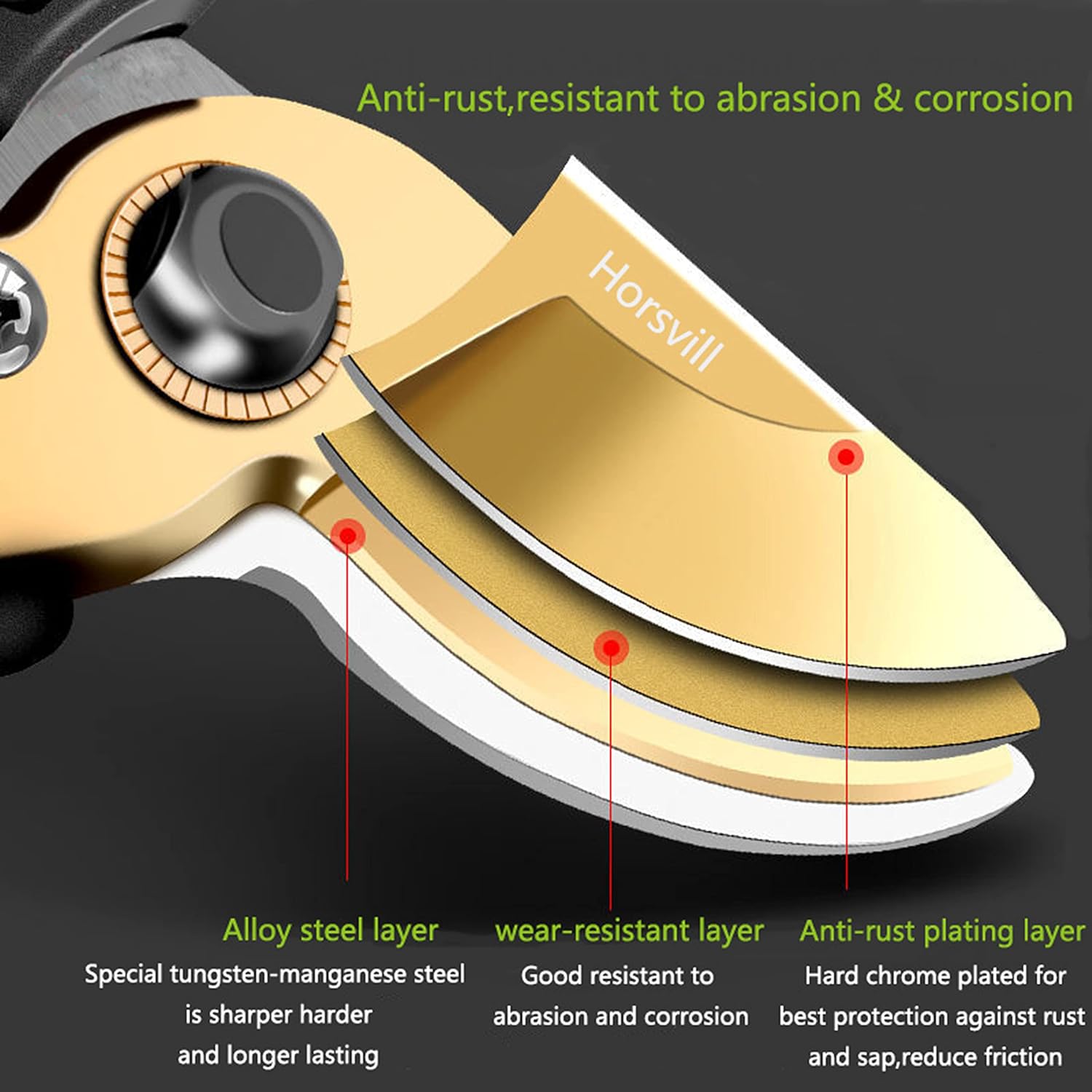 - SPECIAL PROCESS: The blade is quenched and hardened at high temperature,hardness reaches above HRC62, can cut branches up to 1 inch diameter. The blade is hard chrome plated for the best protection against rust and sap, reduce friction, increase smoothness, and extend service life.