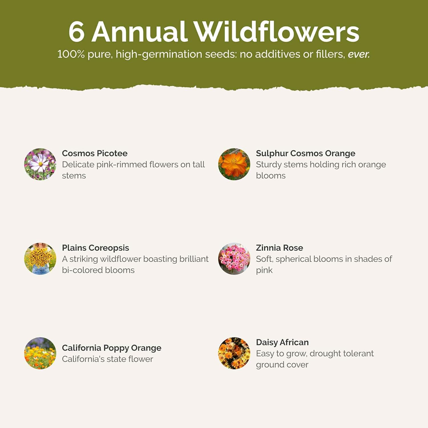 - 100% Pure, Non-GMO Seeds - No fillers, favorites only! Includes 5 easy-to-grow species: Cosmos Picotee, Cosmos Bright Lights, Plains Coreopsis, Zinnia Rose and more