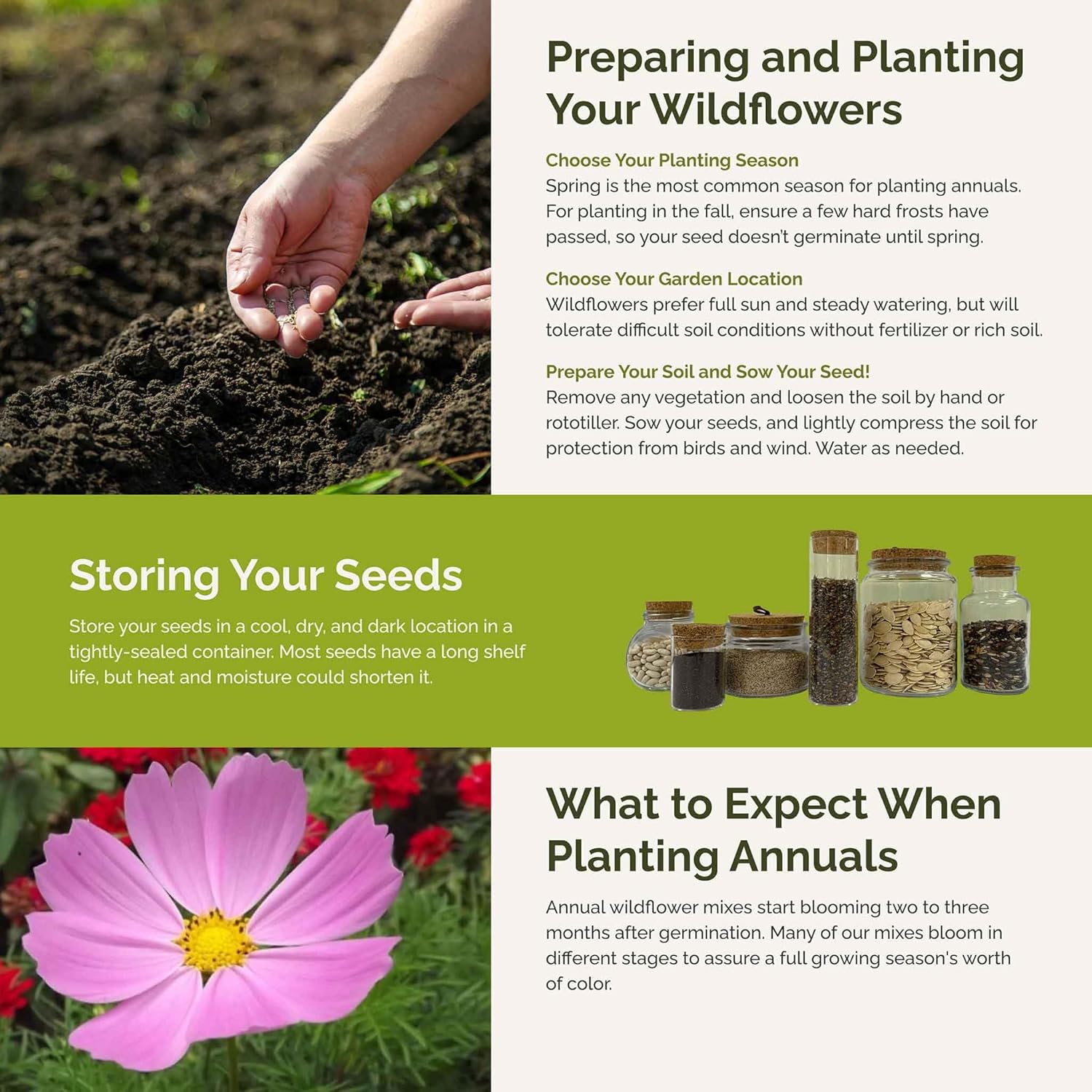 - 100% Pure, Non-GMO Seeds - No fillers, favorites only! Includes 9 easy-to-grow species: Cosmos Pinkie, Cosmos Radiance, Cosmos Purity, Pink Annual Phlox, Pink Cornflower, White Cornflower, Zinnia California Giant, Zinnia Light Pink, Dame's Rocket