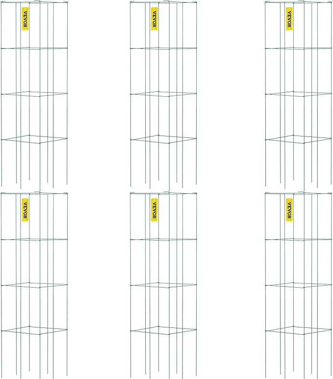 VEVOR Tomato Cages, 14.6" x 14.6" x 39.4", 6 Packs Square Plant Support Cages, Green PVC-Coated Steel Tomato Towers for Climbing Vegetables, Plants, Flowers, Fruits
