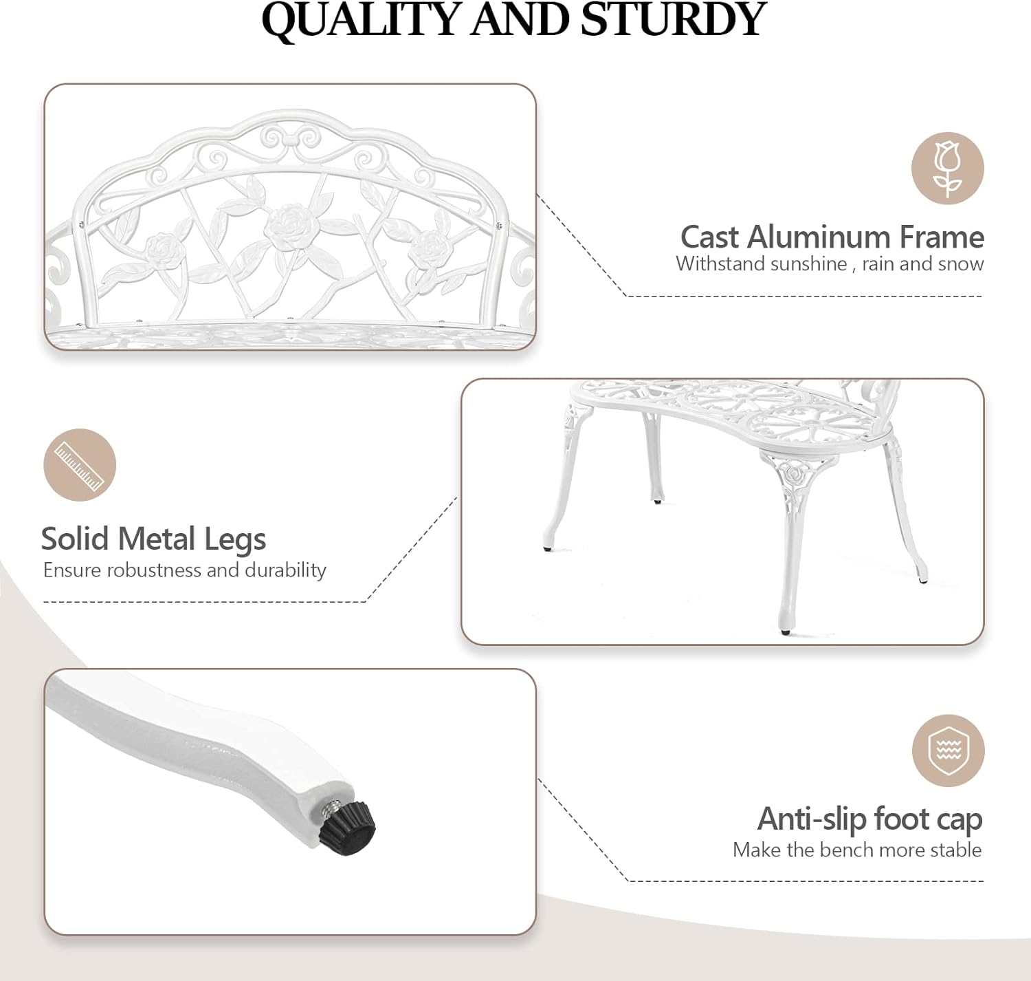- ANTIQUE CLASSIC DESIGN -Antique style allows it to fit with any backyard or home, three round flower pattern constitute the chair seat which shows our creative design. Not only does it offer comfortable sitting experience but also serve as a good decorative ornament