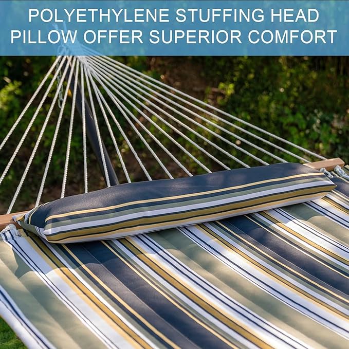 Lazy Daze Hammocks 12 FT Quilted Fabric Double Hammock with Spreader Bars and Detachable Pillow, 450lbs Weight Capacity