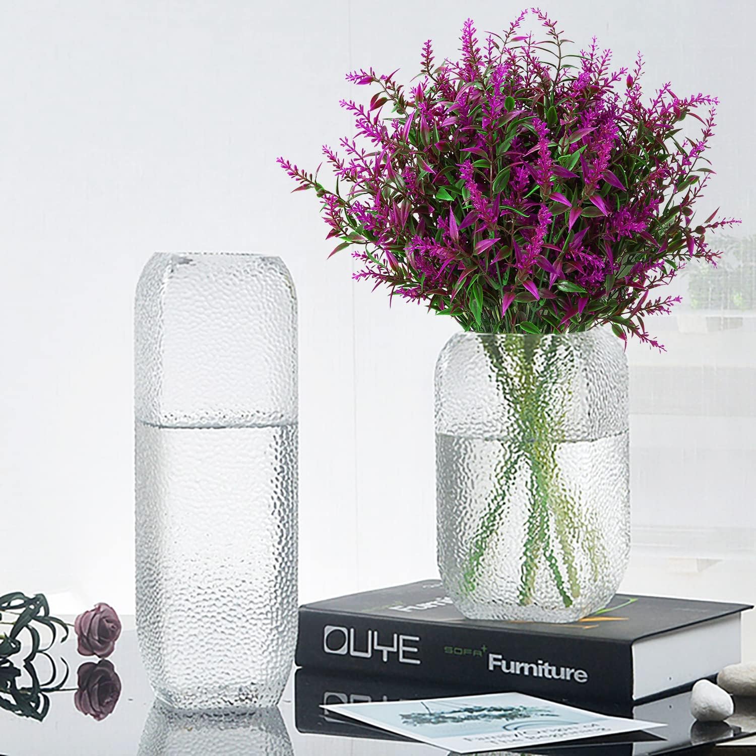 8 Pack Artificial Plants Flowers Grass Shrubs Lavender No Fade Faux Plastic Flowers Outdoor for Farmhouse Garden Porch Patio Indoor Wedding Decoration Greenery Fake Plants uv Resistant