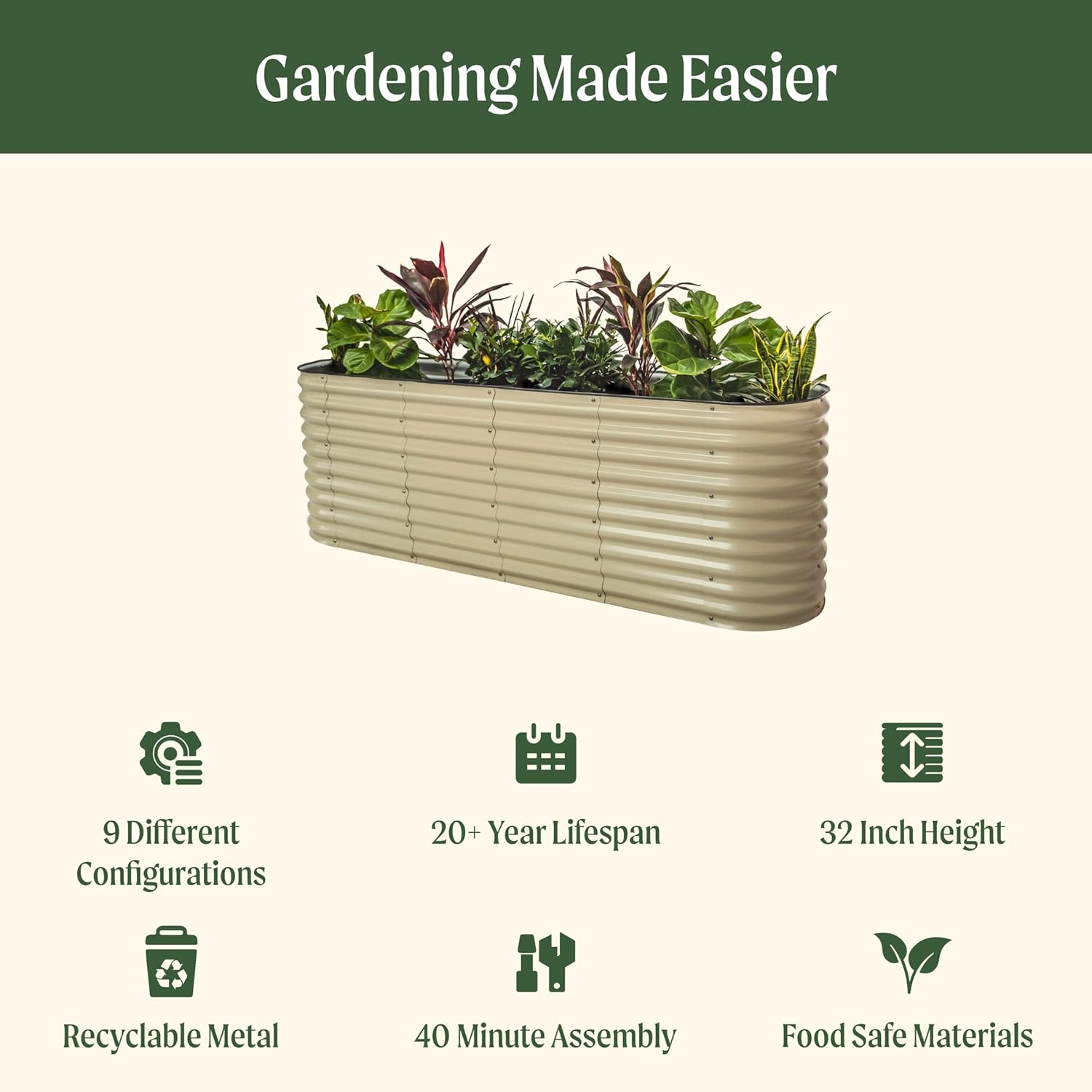Vego Garden 32" Extra Tall Oval Metal Raised Garden Bed Kit - 9 in 1 Modular Planter Box for Vegetables, Flowers, Fruits - British Green