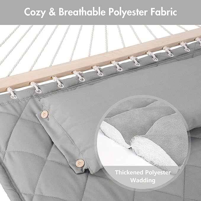 ANOW Heavy Duty Hammock with Spreader Bars and Detachable Pillow, 2 Person Hammock for Outdoors Indoors, 450 LBS Weight Capacity, Light Gray