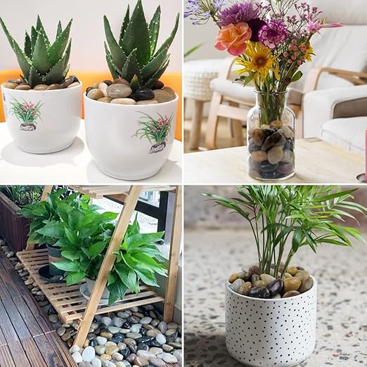 - 【Wide Range Of Use Scenarios】: Colorful high polished pebbles can be used for indoor and outdoor home decoration, can be used to decorate vases, fish tanks, also very good outdoor fountain decoration. These stones are very suitable and beautiful for decorating the front lawn and yard of your home. Smooth and rounded stones will not scratch your feet, and they are perfect for garden paving