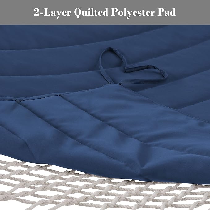 SUNCREAT Hammocks Outdoor Double Hammock with Hardwood Spreader Bar, 475 lbs Capacity, Heavy Duty 15 FT Hammock with Large Soft Pillow, Dark Blue