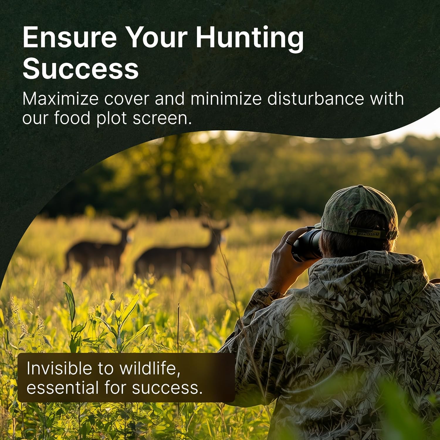 - Conceals and Directs: Conceals your food plots & access to your stands while directing whitetail movement