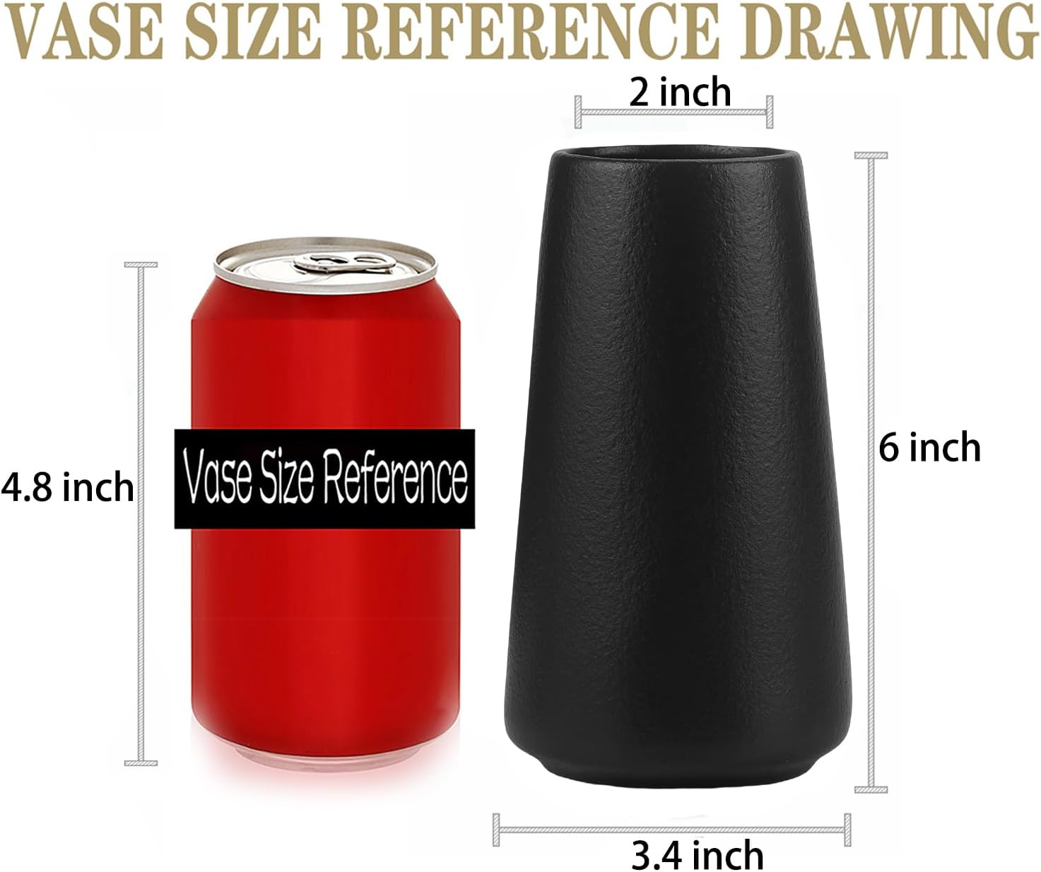 Simple Vase for Flowers Plants, Matte Vases for Modern Table Shelf Home Decor Wedding Boho Decor, 6" H Frosted Elegant Ceramic Vase for Pampas Grass Fluffy Stem Bouquet Lavender Flowers (Black, 2)