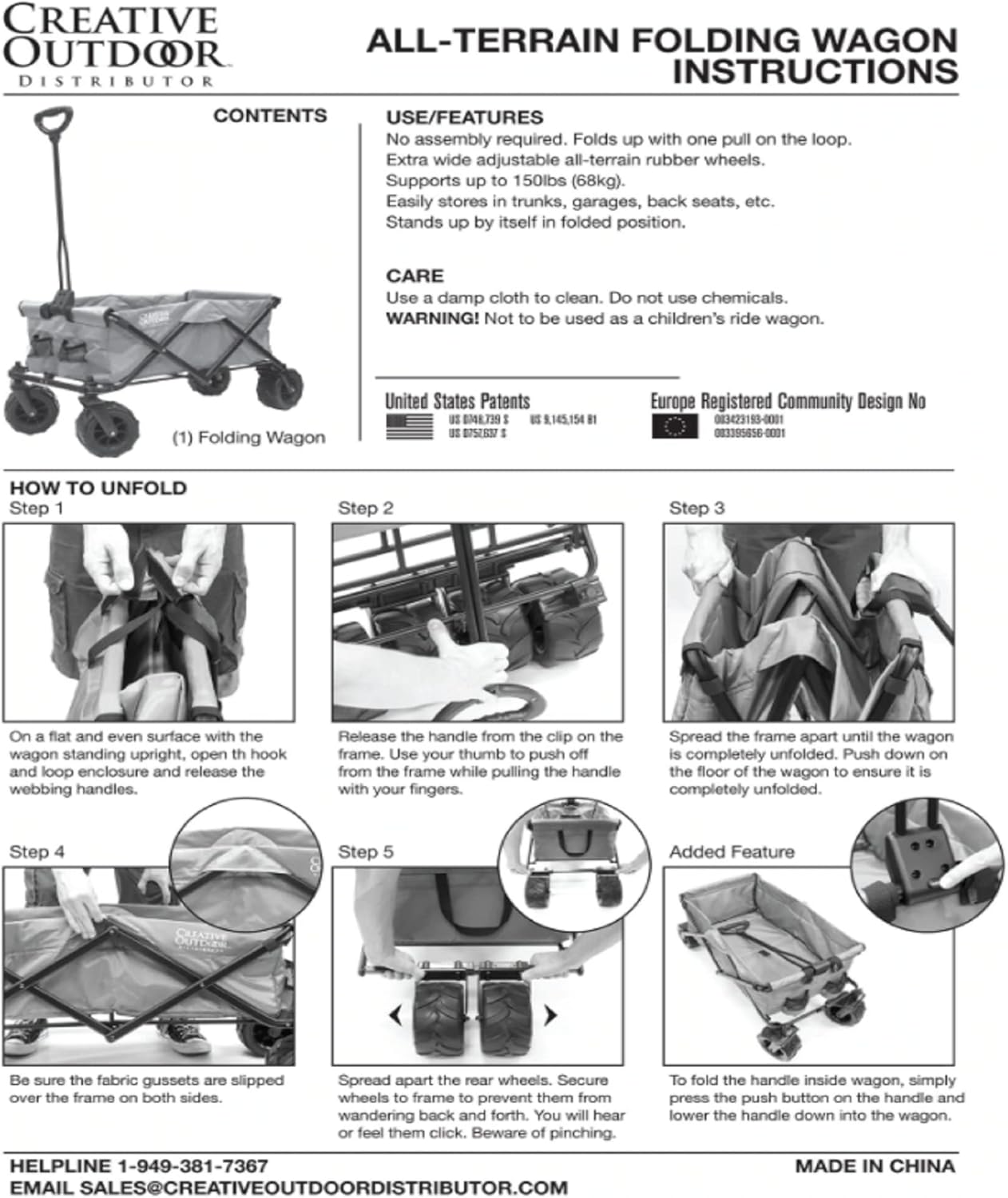 - STORAGE: Simple set up - folds up to fit in most car trunks (no assembly required). Fold the wagon by one pull on the toggle. Comes with travel/storage sleeve.