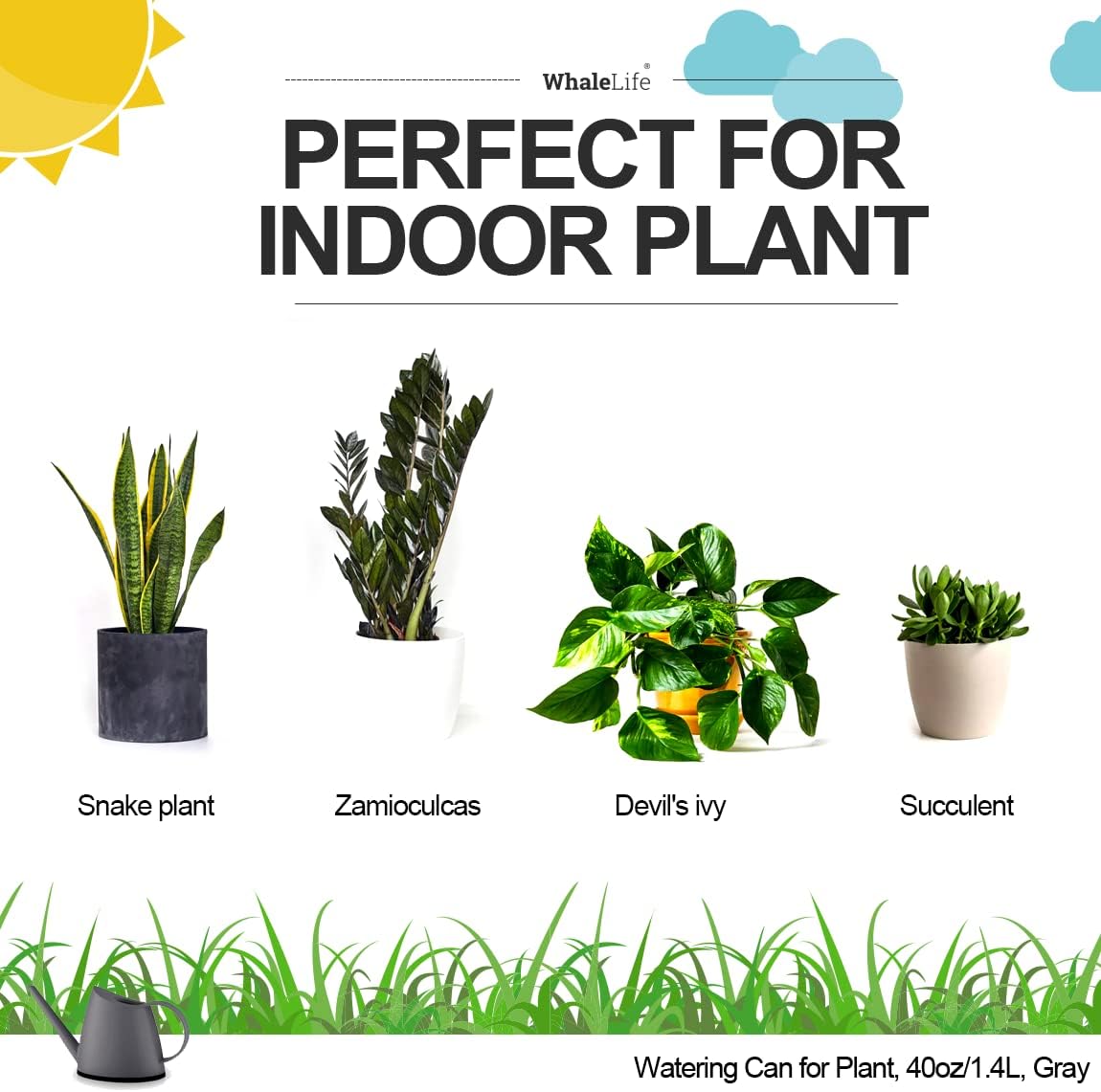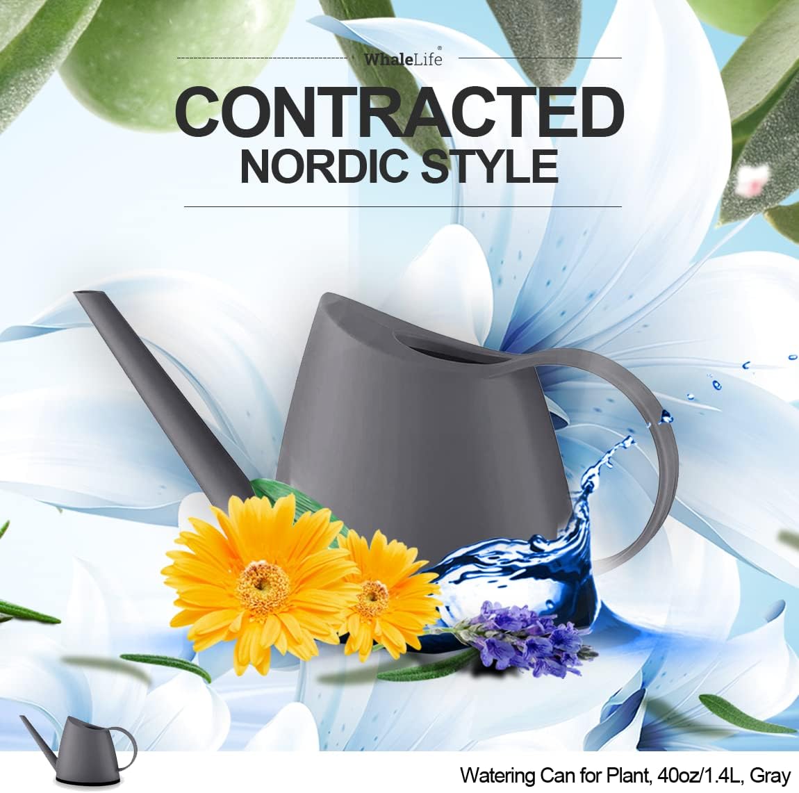 WhaleLife Indoor Watering Can for House Bonsai Plants (1.4L, Gray)