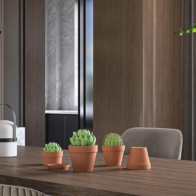 - Multi usages- The small size of the 3-inch miniature terracotta pots makes them ideal for your balcony, windowsill, or your desk at work.Decorate Your Home, Office or Porch: These tiny clay pots are great for your coffee table at home or as the cute terra cotta pots are perfect for plants nursing, ornament for room or balcony, wedding, baby shower, and other party decoration, crafts creation and more. Suitable for school projects of teaching children about growing plants.