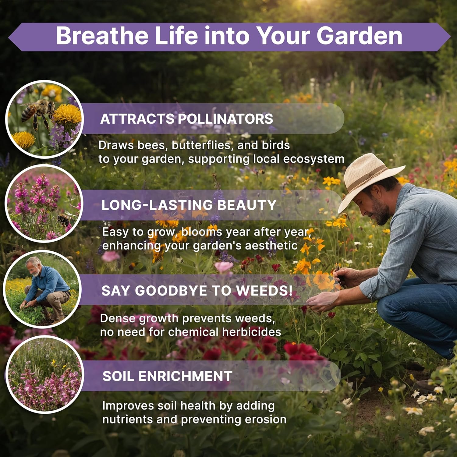 - ๐ฑ Easy & Fun Growing Experience with our online guides - Donโt plant disappointment - Add more colors to your wildflower garden! We send only super hearty heirloom flower seeds with the highest germination rate and fast sprout. Our detailed growing guide helps you grow seeds the garden of your dream like a PRO.