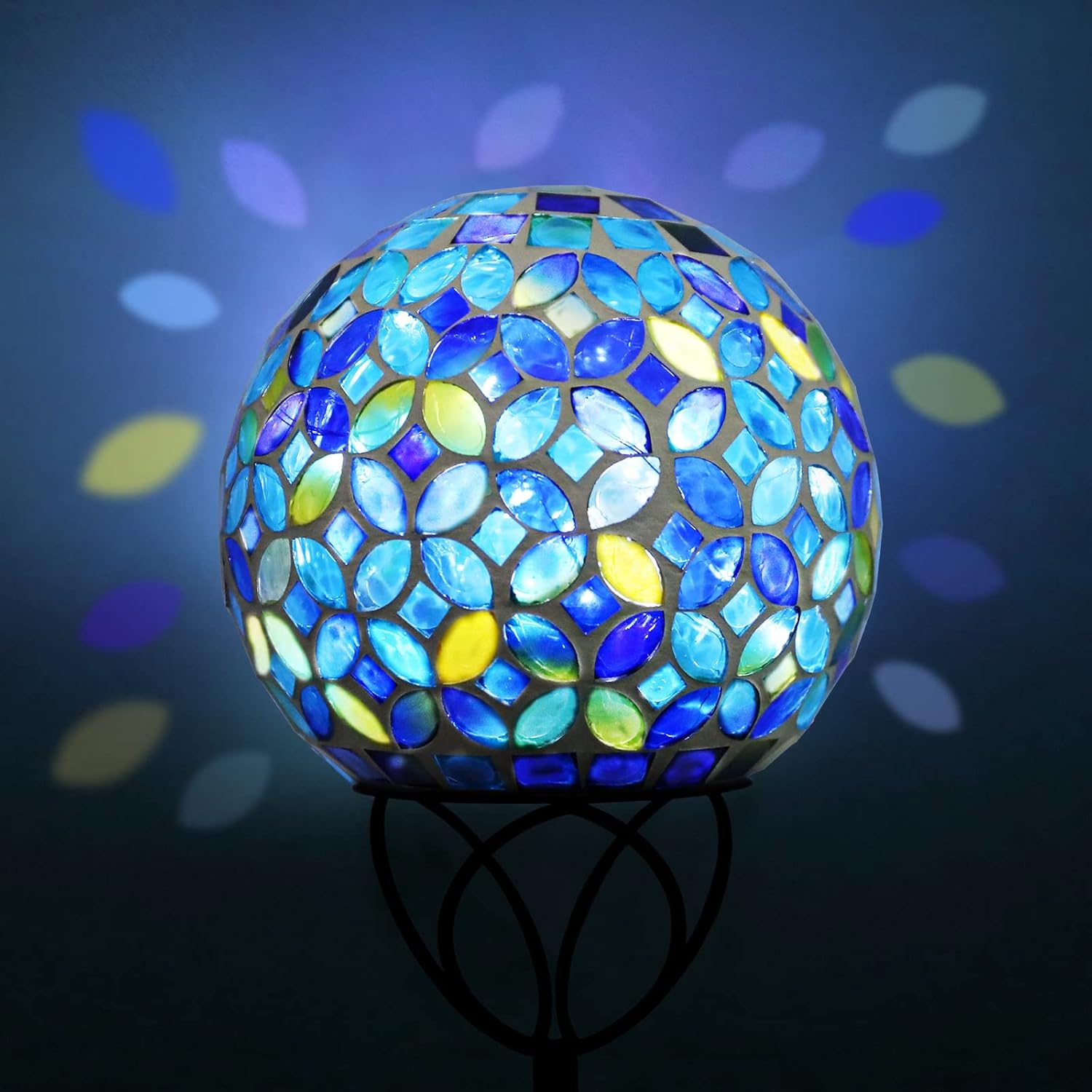- 【Unique Design】Solar garden light is designed with mosaic glass globe ball, which lights up beautifully and looks fabulous! Garden lights enough to create a romantic atmosphere for you and attract your neighbor's eye to your yard