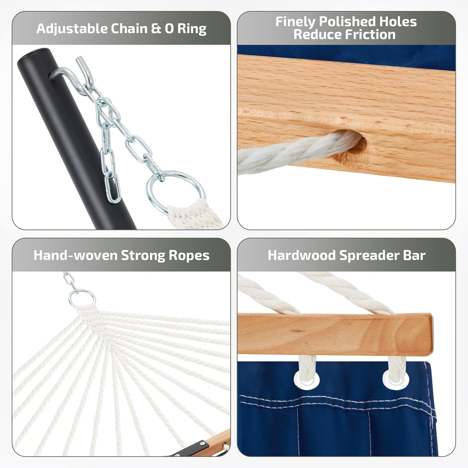 Two Person Hammock with Stand Heavy Duty, Outdoor Patio Hammock with Portable Steel Stand, Large Double Hammocks,480lbs Capacity.(Dark Blue)