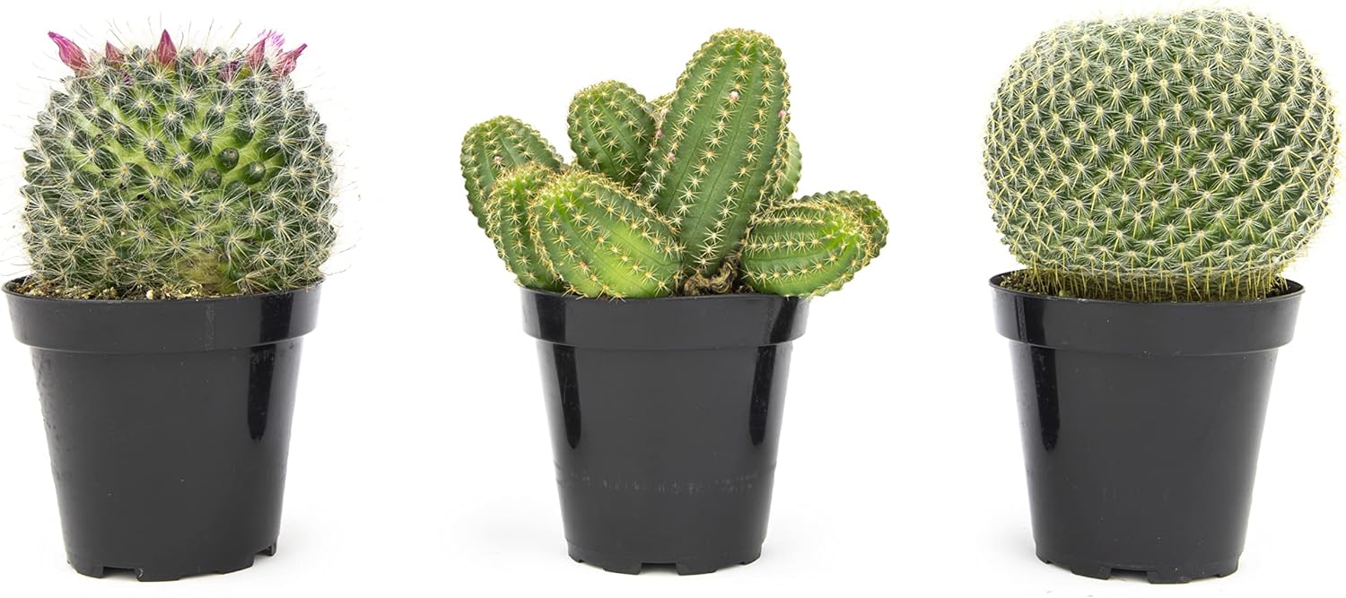 - LIVE CACTUS PLANTS: An assortment of baby cacti plants featuring 3 quality small cactus plants in 3.5" nursery pots. Our variety pack includes cacti perfect for use as houseplants or patio plants.