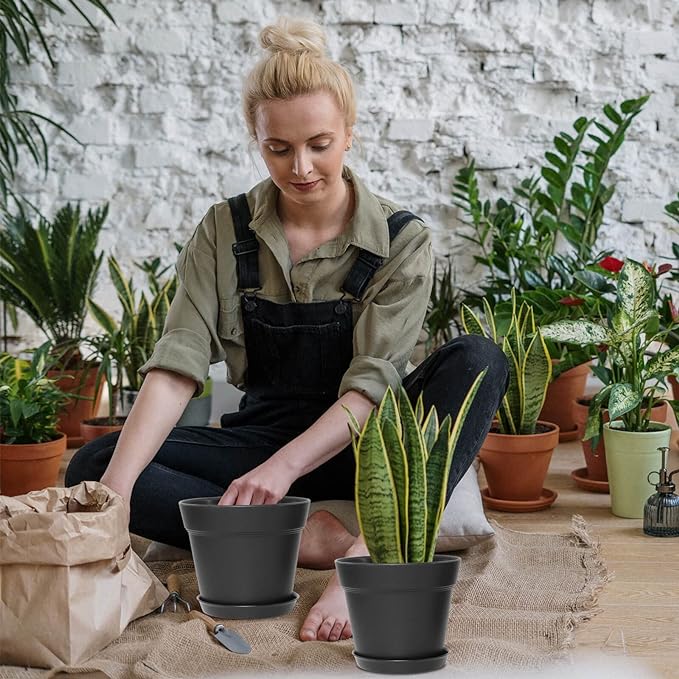 - 【Most repotting for Indoor Plants】 This 6inch Plant pot set includes 16 pieces planting pots and 16 pieces of the matching trays are great for repotting plants, you can grow a variety of plants indoor or outdoors, such as orchid, snake plants, mint, parlor palm, devil’s ivy, cactus, aloe