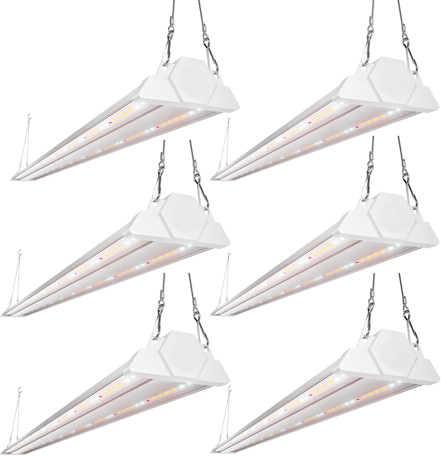 FREELICHT 6 Pack 4ft LED Grow Light, 60W (350W Equivalent), Sunlike Full Spectrum Integrated Plant Light for Hydroponic Indoor Plant Succulent Seedling Veg and Flower, Plug in with On/Off Switch