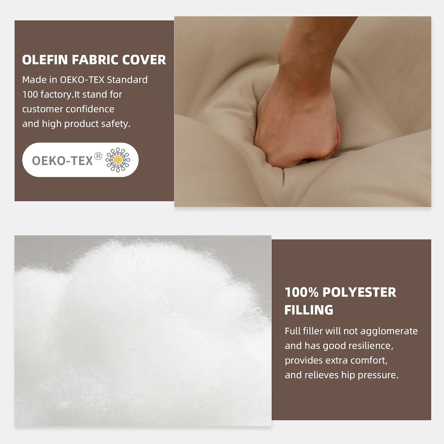 - Comfortable & Durable: RACE LEAF cushions are made of Olefin fabric cover and 100% polyester fiber filling. The cover fabric has been treated with solution-dyed to resist fading, light fastness can withstand up to 1,500 hours and still not fade. The filling is 100% polyester, will not agglomerate has good resilience, provides extra comfort, and relieves hip pressure