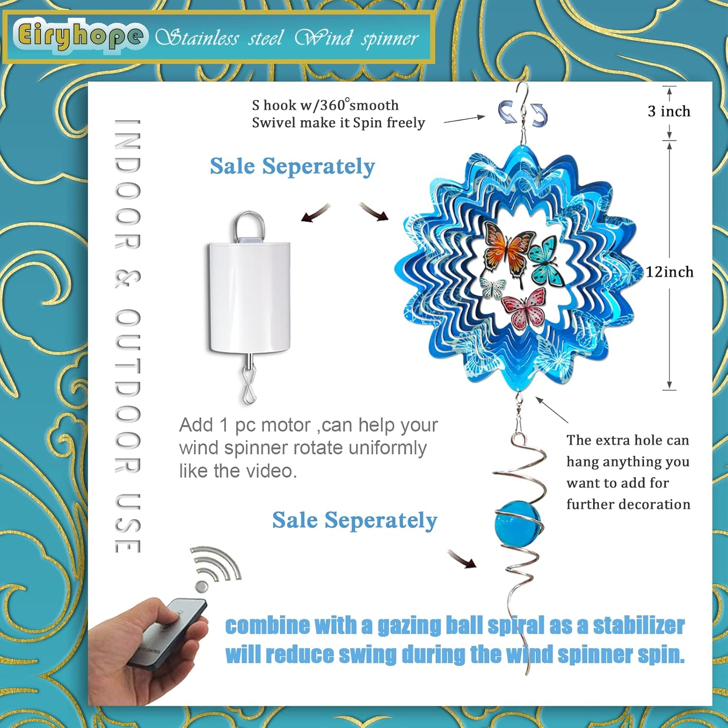 - 【Premium Kinetic Wind Spinners】Our quality wind spinner is made with high quality and durable materials. Made of stainless steel material, laser cut, hand polished and painted with epoxy protection, this stainless steel wind spinner is one of the best metal wind spinners, highly weather resistant, rust resistant and reflective. This quality outdoor decoration has incredible color and light reflections that add color, movement and beauty to indoor and outdoor spaces.