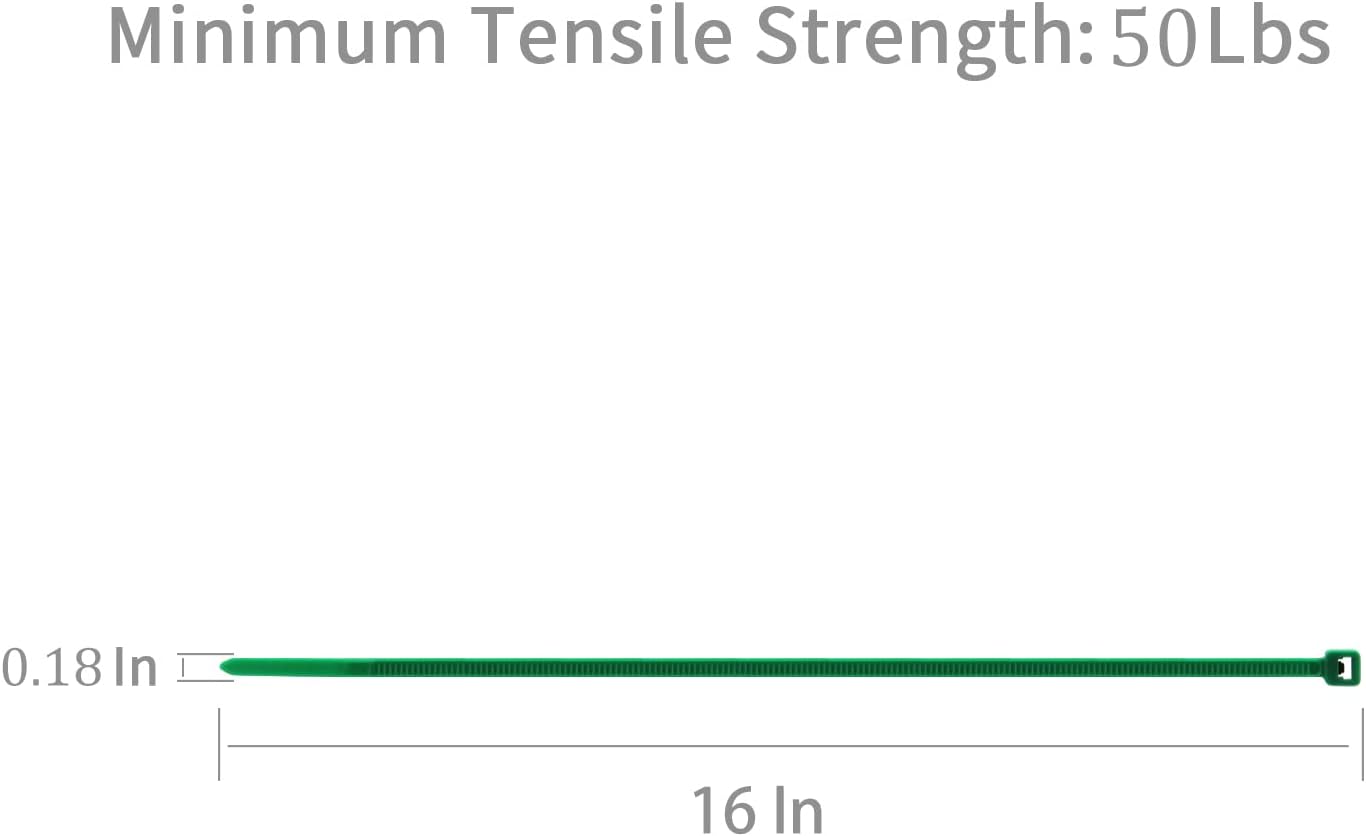 XINGO 100PCS Cable Zip Ties Heavy Duty, Premium Nylon Plastic Wire Ties with 50 Pounds Tensile Strength, Self-Locking Black Nylon Zip Ties for Indoor and Outdoor (16 inch, Green)