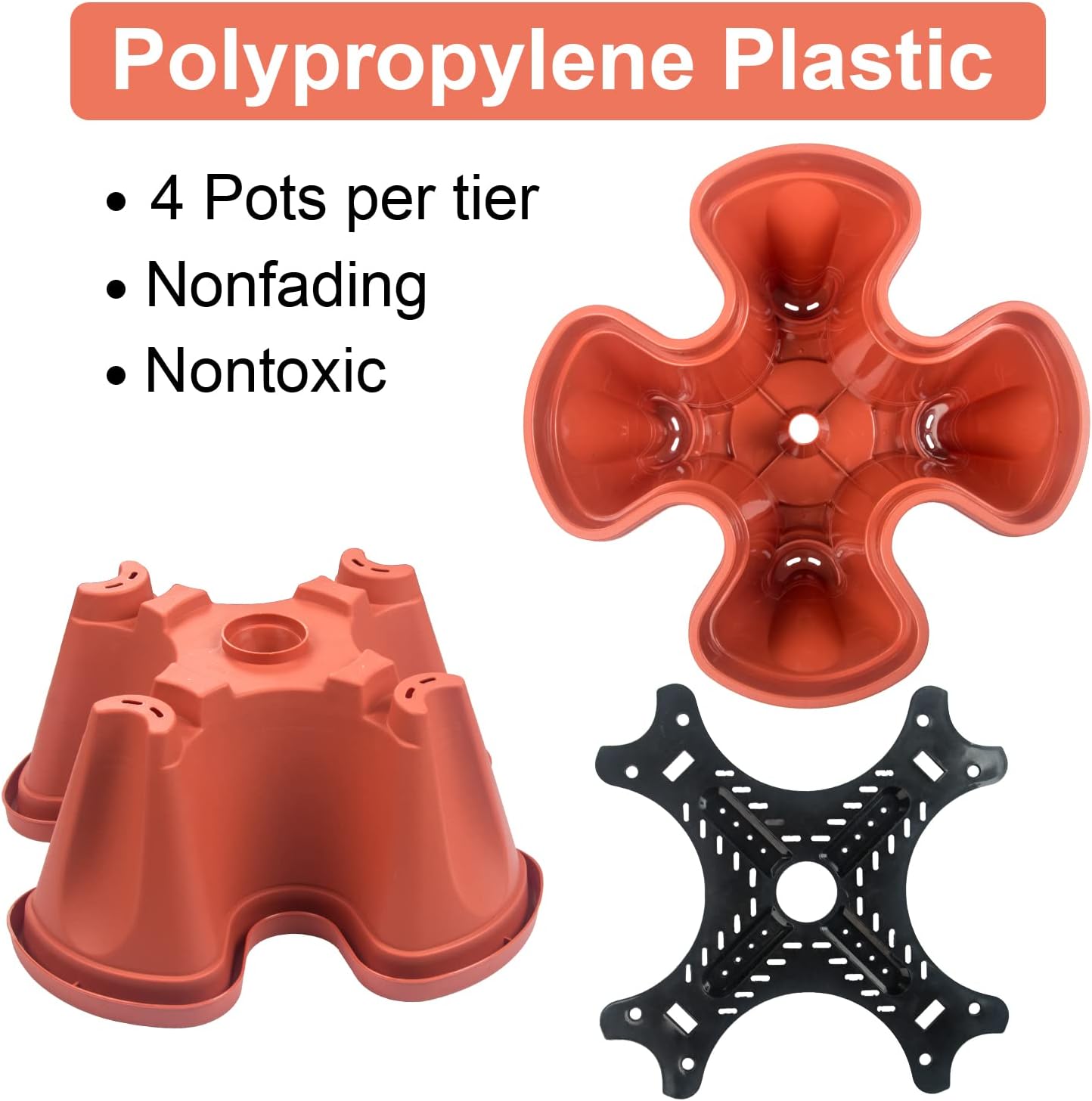 DUNCHATY Stackable Planters 3 Tier Vertical Garden Planting Tower Planters Strawberry, Herb, Flower, and Vegetable Planter Indoor Outdoor Gardening Pots with Removable Wheels and Tools