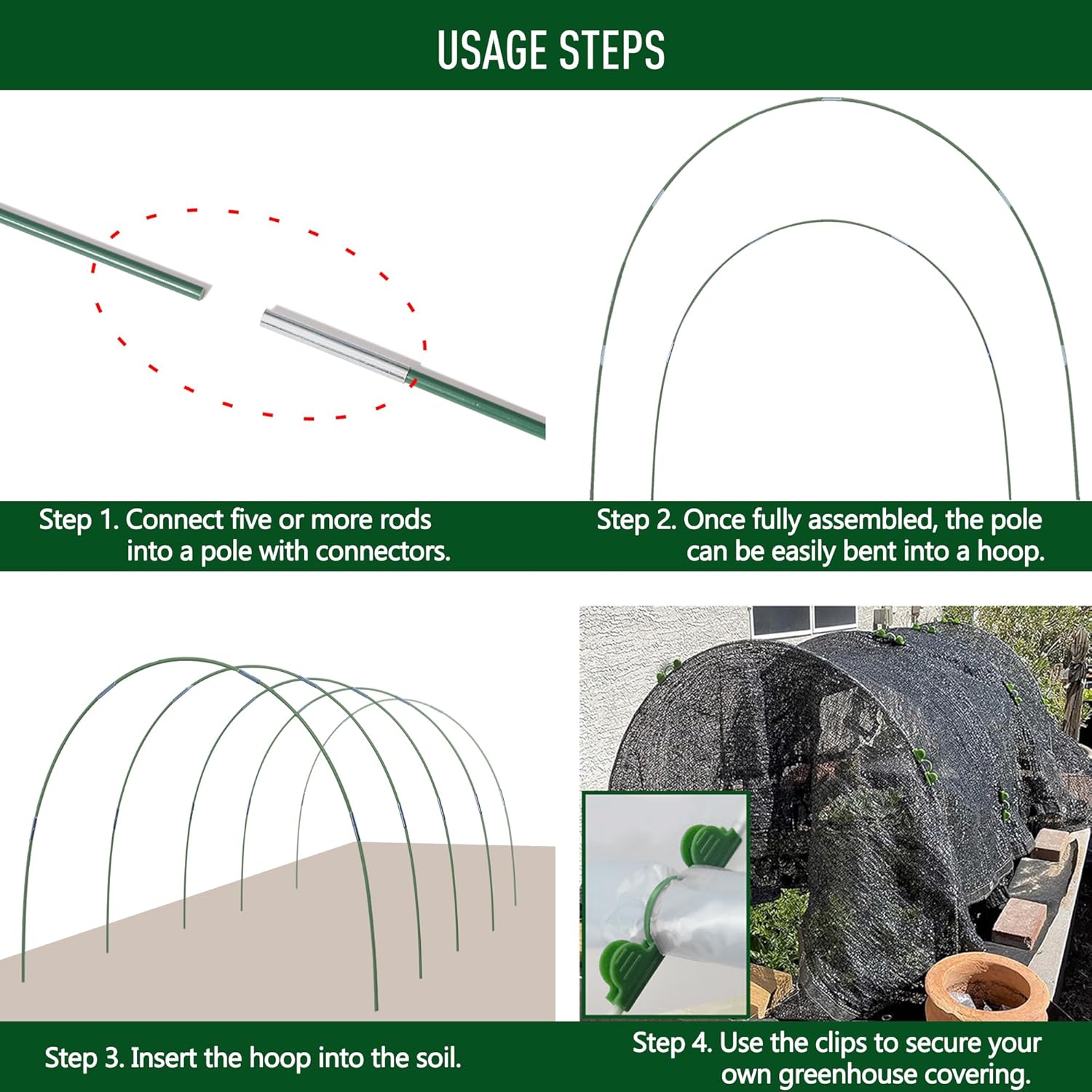 - 【JUST BEND IT】Use the connectors to join the needed number of rods. As you bend the hoops, they connect securely. Insert them into the soil, and you'll find these hoops can be reused season after season.
