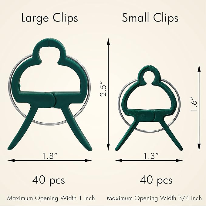 - 80 Value Set - The 80 set contains 40 large clips and 40 small clips, you can use the small ones ton thinner stalks and large ones on thicker stalks. It's easy to adjust or move up to the larger clips in the kit from small ones, leave plenty of room for the plant to grow.