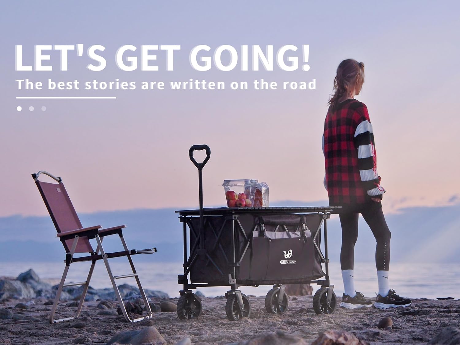 - Wagon with Table: Whitsunday folding wagon includes a table plate; it provides a stable surface for outdoor use; You can cook, play games, and picnic on the desktop