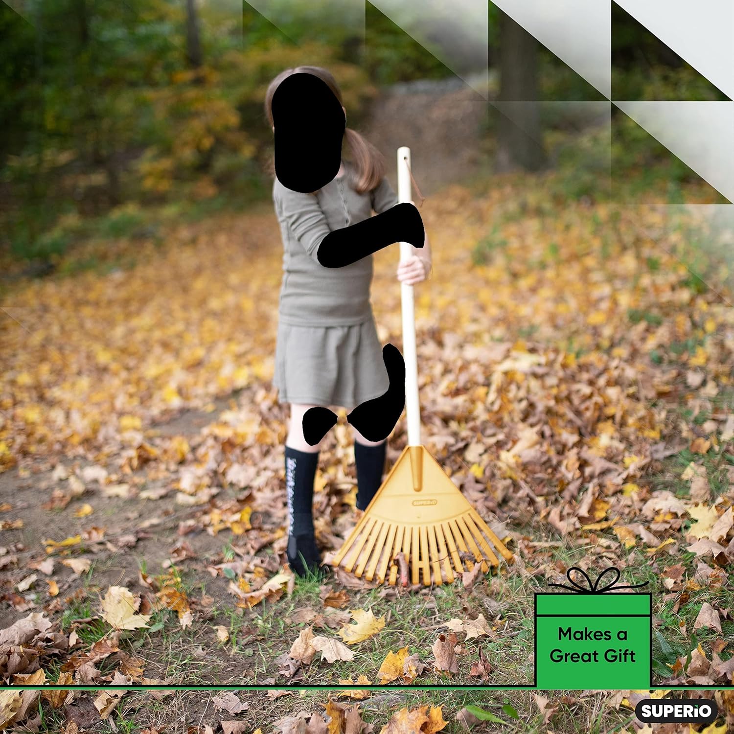 Superio Kids Rake with Hardwood Handle, Durable Plastic Head to Sweep Leaves in Lawn and Tidying Up The Garden, 34" (Kid Size, Yellow, 1-Pack)