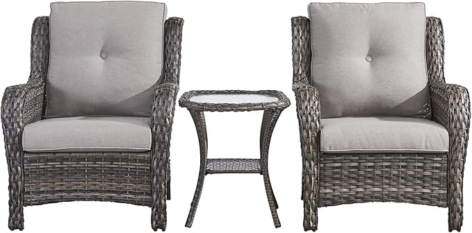- 【Multi-Scene Application】The outdoor patio bistro set suitable for deck,front porch,garden,backyard,balcony.The 3 pc wicker Patio furniture set is also a great choice as a gift to your family and friends.