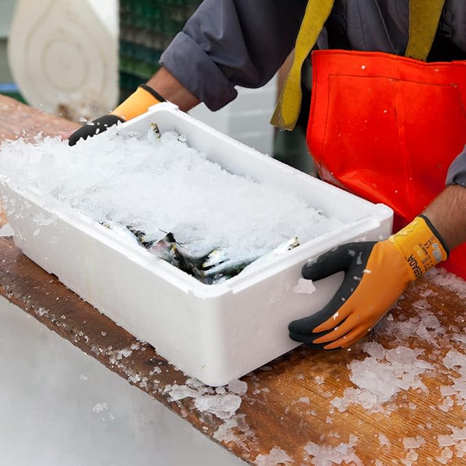 - 【WATERPROOF】: These waterproof winter work gloves have 2 layers, Outer coating insulated cold from working gloves in sub-zero weather. Inner thermal fleece lining keeps hands warm during mechanic work, gardening yard work. Totally windproof too. Palm and finger area has a textured surface, provides firm grip for weatherproof work gloves. Soft and stretchy yarns knitted together allow for great flexibility, latex rubber coating provides better softness than nitrile in freezer warehouse