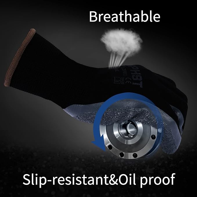 • High Quality & Exquisite Craftsmanship - With a seamless polyester lining, gauge 13, nylon lining for optimum comfort and softness, the latex coating gloves are covered with a natural latex wrinkle finish on the palm to give you better breathability, strength and abrasion resistance, dustproof, anti-static, protection from cuts and punctures. The latest knitting technology makes your work more convenient.