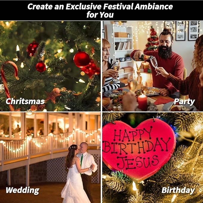 - [Made to Satisfy All Need for Decoration]-The solar outdoor string lights have been fully optimized for performance in order to achieve various decorative effects. 200 bright LED bulbs uses low heat beads, reduce power consumption and at the same time greatly improve service life, the built-in battery capacity has also been increased. In addition, it has high tenacity and can be easily bent into various shapes to meet your decorative needs.