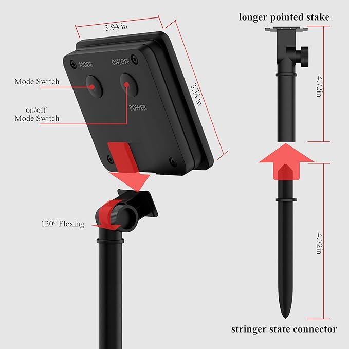 - [More Efficient & Safer Light Sensors]-We use a more advanced monocrystalline solar panel and have upgraded its size. It can now receive, store and release solar energy more efficiently, dramatically increasing the solar energy conversion rate, meaning shorter charging times and longer lighting times. All modules are IP65 waterproof, whether it is raining, foggy or snowing can be used outdoors. Usually it can work up to 10-12 hours after 4-6 hours of charging in direct sunlight.