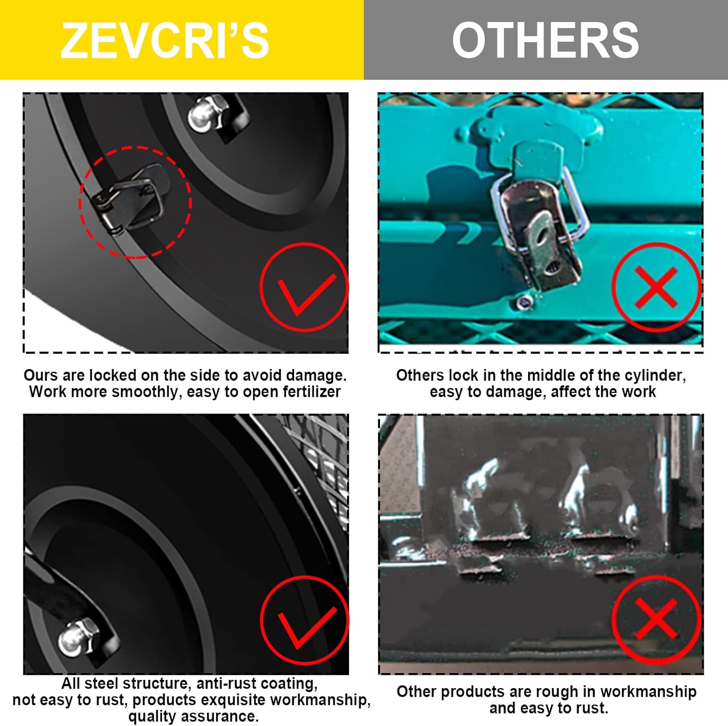 - Easy to use: Install the handle, add compost, lock the latch and roll on the lawn. The latch secures the load and ensures that the basket remains closed during turning and tumbling operations. The fertilizer spreader operates smoothly on different terrains such as slopes, uneven surfaces.
