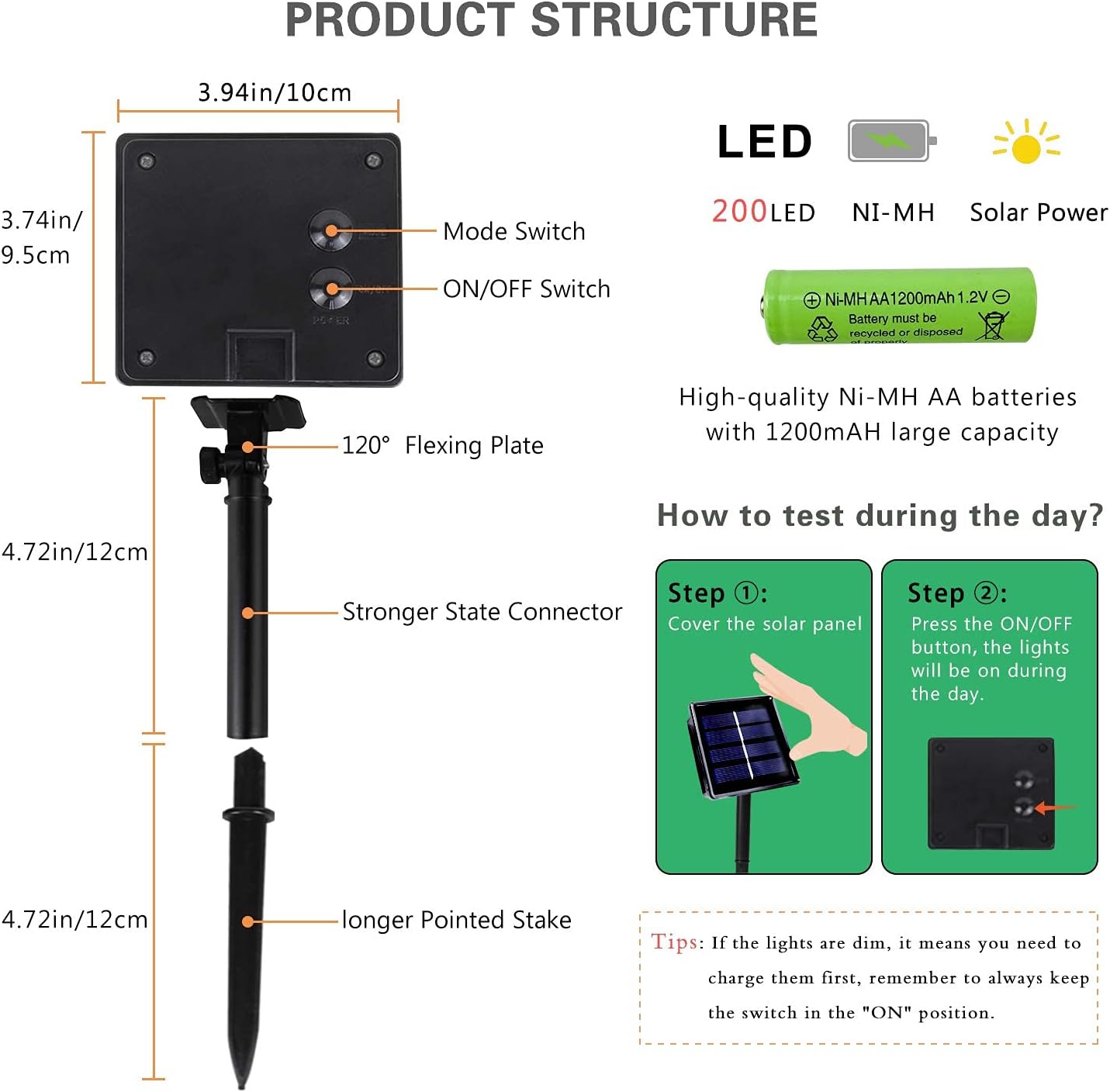 - 8 Lighting Modes, Memory Function and Auto On/Off: These solar twinkle lights have the on/off button and mode button. You can select 8 different modes to satisfy your diverse needs by pressing the mode button.And the built-in memory chip saves your last modes setting, so there is no need to reset it again.