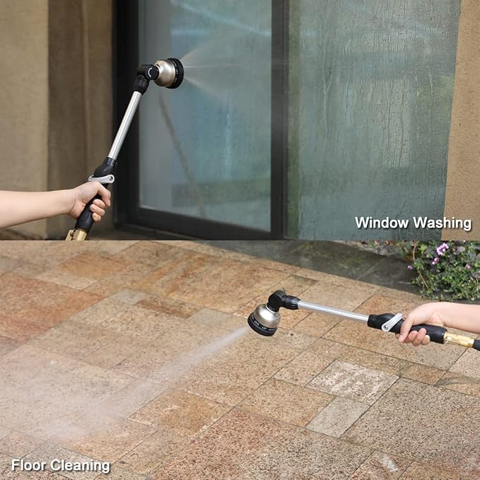 - 【100% HEAVY DUTY METAL】The adjustable garden hose sprayer wand is constructed of zinc alloy, aluminum alloy, and TPR for a tough lightweight and durable that's easy to grip and adjust. Slip resistant handle make this watering wand comfortable to use. Non-corrosive exterior that ensures strength and durability for extended nozzle life. The shock resistant rubberized bezel dial can enhance durability & flexibility and withstand hard impacts & heavy force in daily drops and shocks.