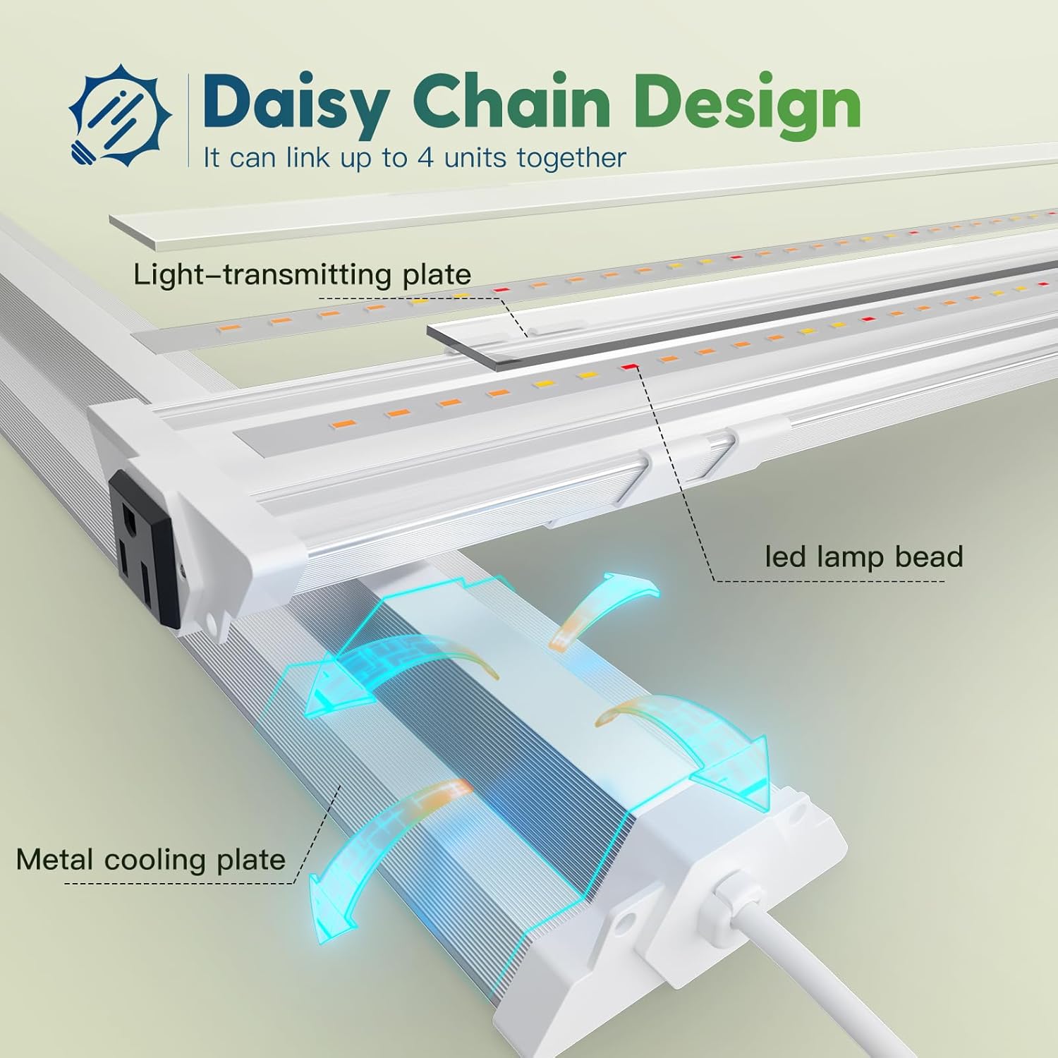 - Sunlike Spectrum: Emulates natural light, ideal for all stages of plant development from seeding to growth and bloom. Add red spectrum to promote photosynthesis.