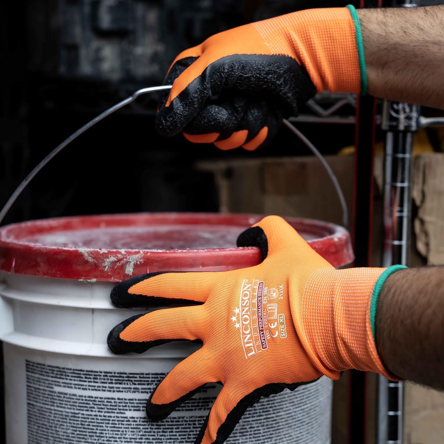linconson 12 Pack Safety Performance Series Construction Mechanics Wrinkle Latex Work Gloves