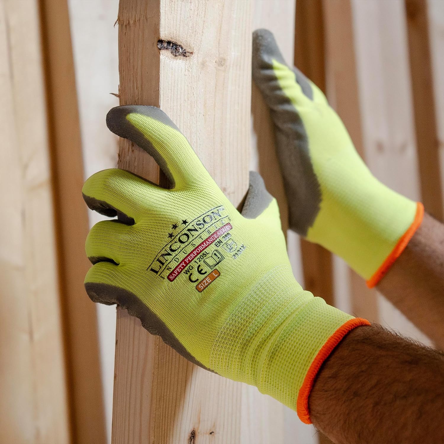 linconson 12 Pack Safety Performance Series Construction Mechanics Wrinkle Latex Work Gloves