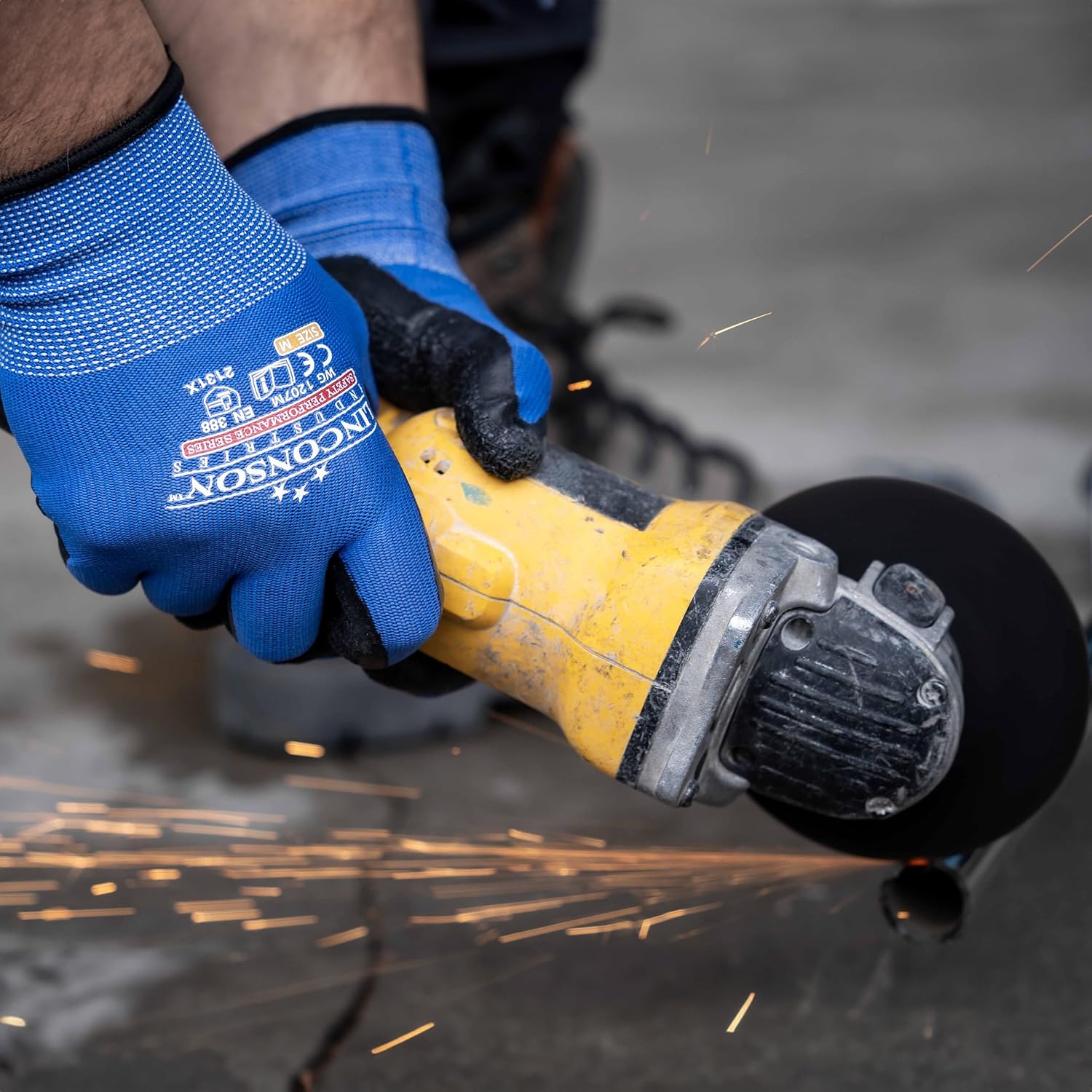 linconson 12 Pack Safety Performance Series Construction Mechanics Wrinkle Latex Work Gloves