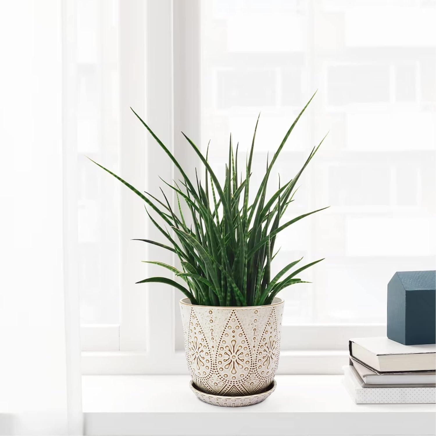 - Size & Package: 8.0 Inch Pot . Package: contains 1 ceramic flower pots, 1pcs mesh pads and 1pcs saucers(NOT INCLUDE PLANTS)