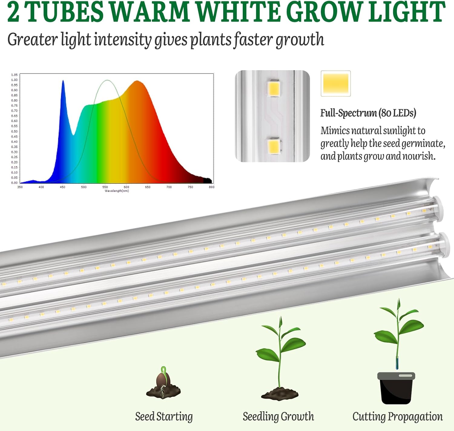 - Improved Performance: Featuring an intelligent design with double rows of LED light 80 beads, this full spectrum plant grow light kit provides better light efficiency than fluorescent lamps while keeping energy costs at a minimum. Grow light comes with a convenient PVC pipe support and sturdy chain which is height adjustable, depending on your plant’s needs.