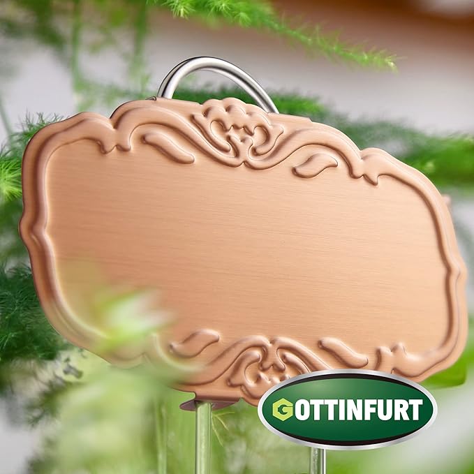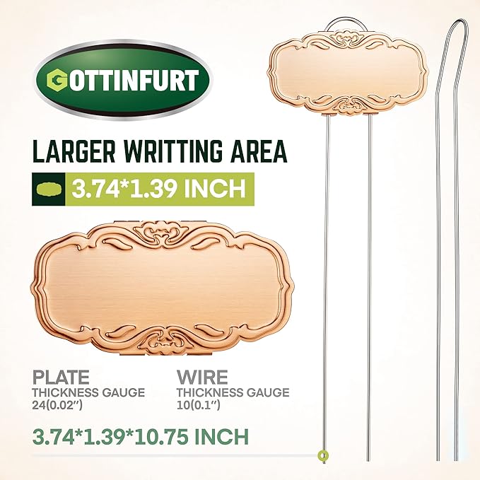 - The whimsical arch design creates a warm and romantic garden atmosphere. Each nameplate measures 3.74x1.39 inches, allowing for plenty of space to write on. The sturdy 10.75” double pronged stakes are easy to insert into the soil and read the labels from a standing position.