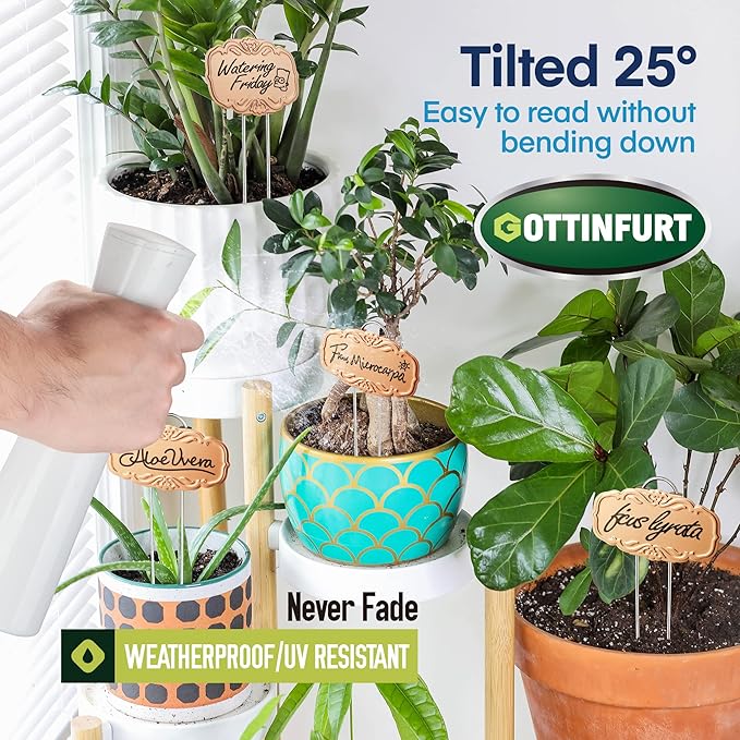 - Add style and order to your flower beds, plant pots and balcony boxes with this 25 piece attractive plant label set to help you easily identify flowers, plants, shrubs, herbs, vegetables, garden and indoor plants.