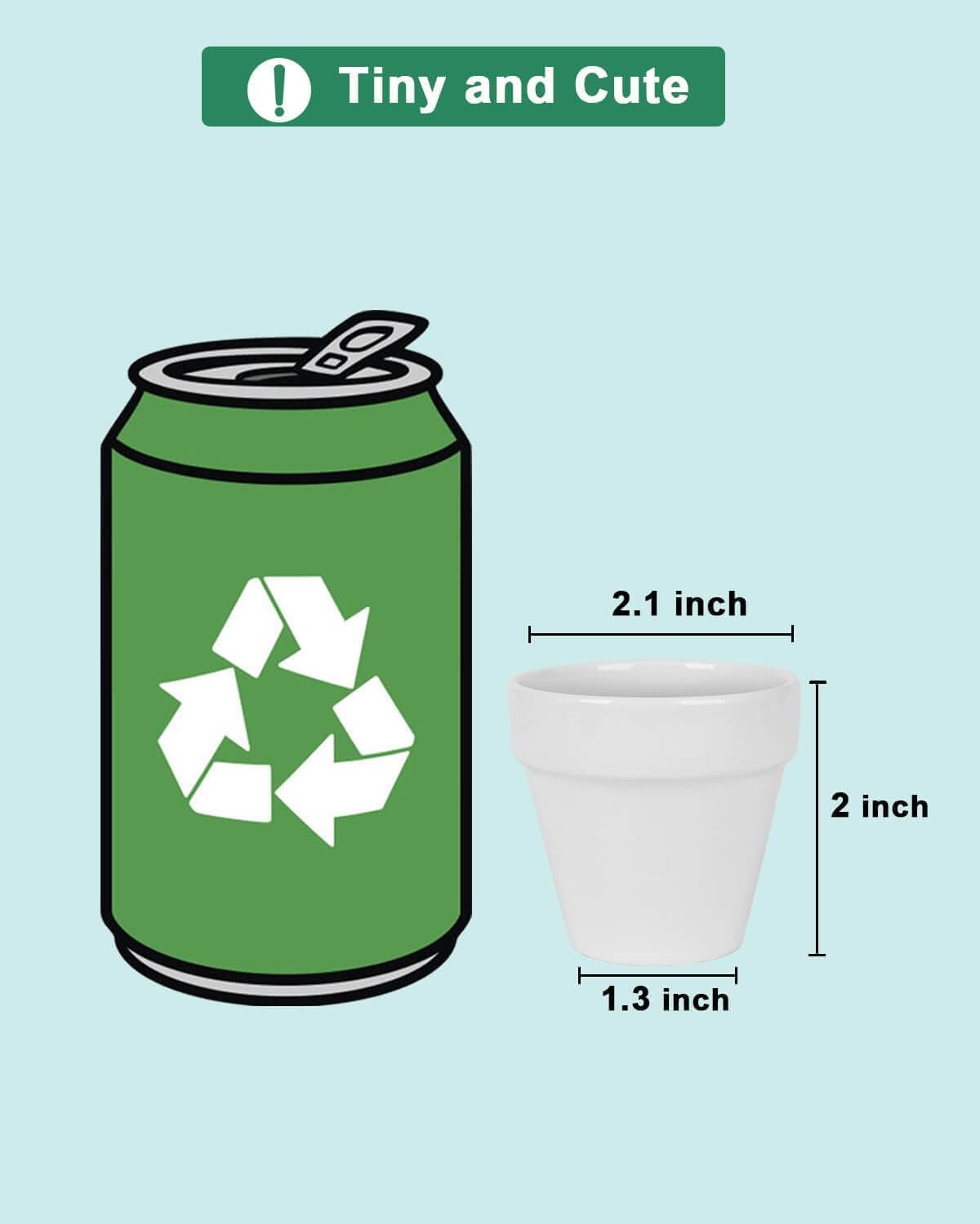 - 【Mini and Lovely】The white tiny ceramic pots for plants, 2 inches in height, 2.1 inches in outer diameter, are designed for holding small succulent, cactus and herbs. There are 48 pcs pots in the package, plants and soil are not included
