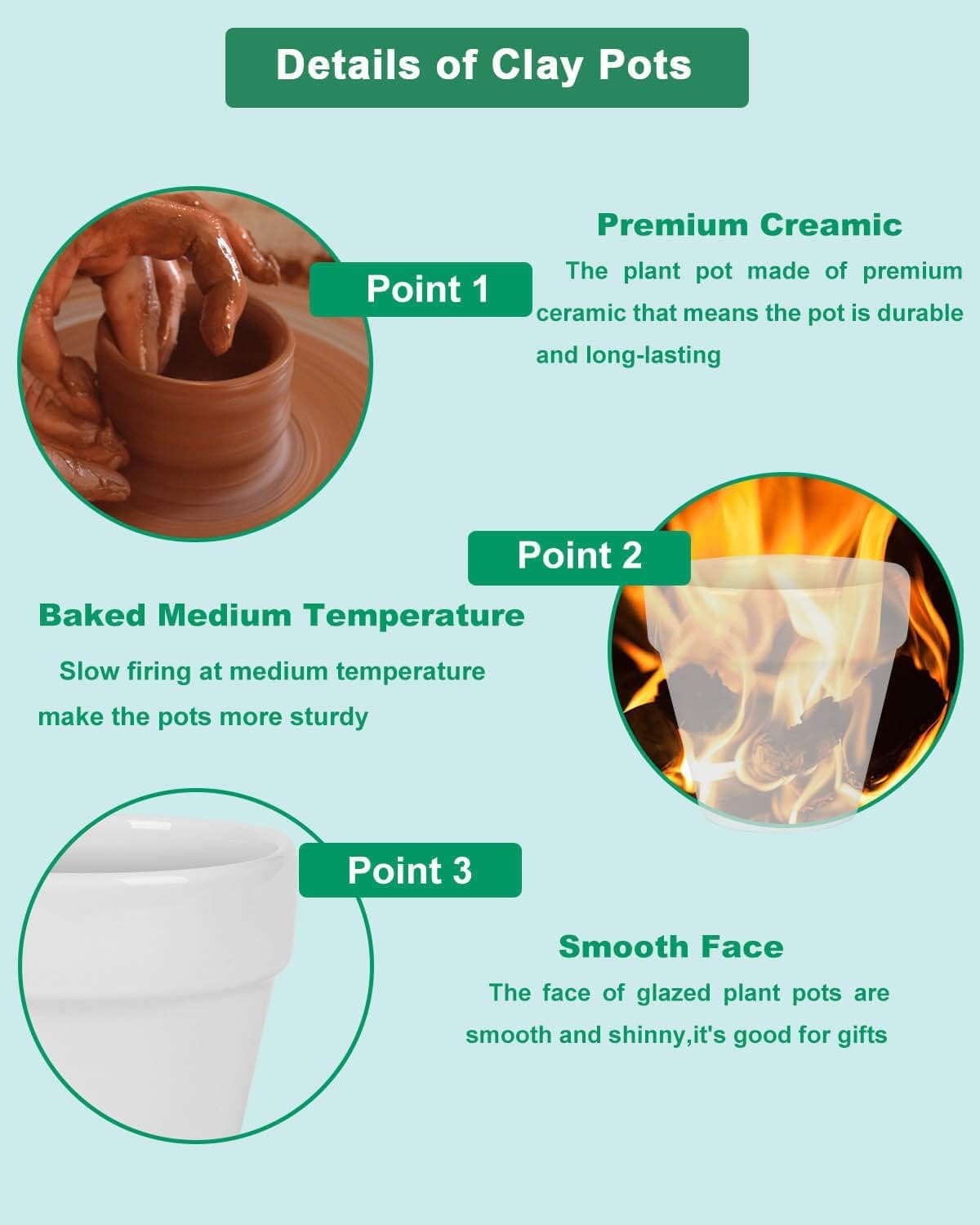 - 【Premium Quality 】 The white ceramic pot made of top-quality clay and baked at 1796°F high temperature, each ceramic pots with black paint features great durability. All packages have passed the 3-foot drop test to ensure the pots stay intact during delivery.