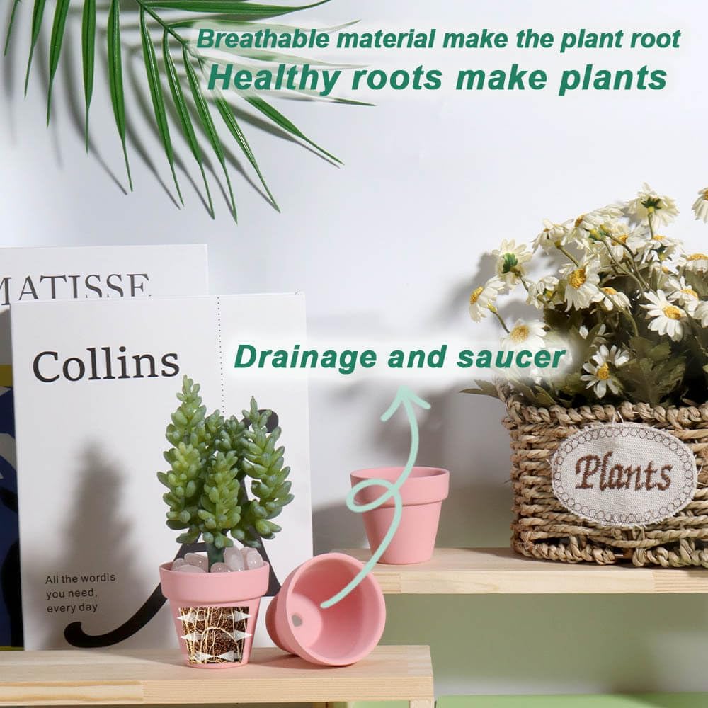 - 【Multi-usages】The cute terra cotta pots are perfect for plants nursing, ornament for room or balcony, wedding, baby shower, and other party decoration, crafts creation and more. Suitable for school projects of teaching children about growing plants.