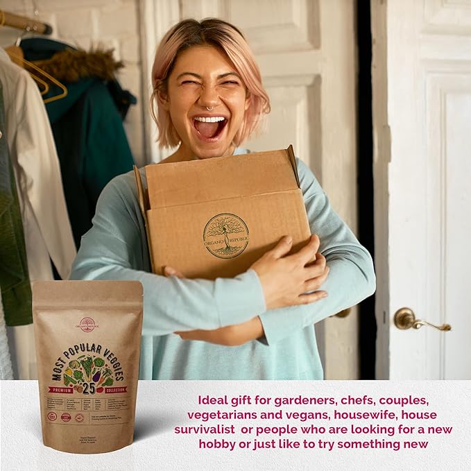 - 🥦Huge Value - 25 Most Popular Vegetables Seeds Variety Pack non-GMO Heirloom Seeds - LESS THAN $1.50 PER SEED VARIETY - 2800+ seeds including: Zucchini, Butternut Squash, Eggplant, Pumpkin, Brussel Sprouts, Cabbage, Bok Choy, Cauliflower, Broccoli, Rapini, Kohlrabi, Beet, Radish, Okra, Celery, Slicing Cucumber, Pickling Cucumber, Red Beefsteak Tomato, Large Cherry Tomato, California Wonder Pepper, Cayenne Pepper, Artichoke, Collards, Onion and Carrots